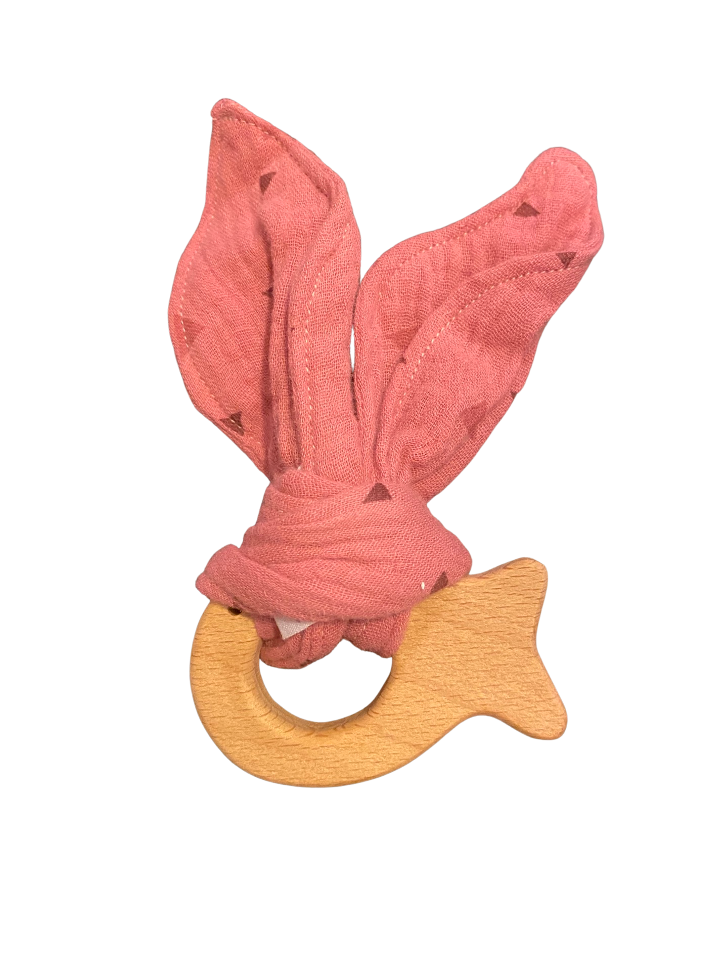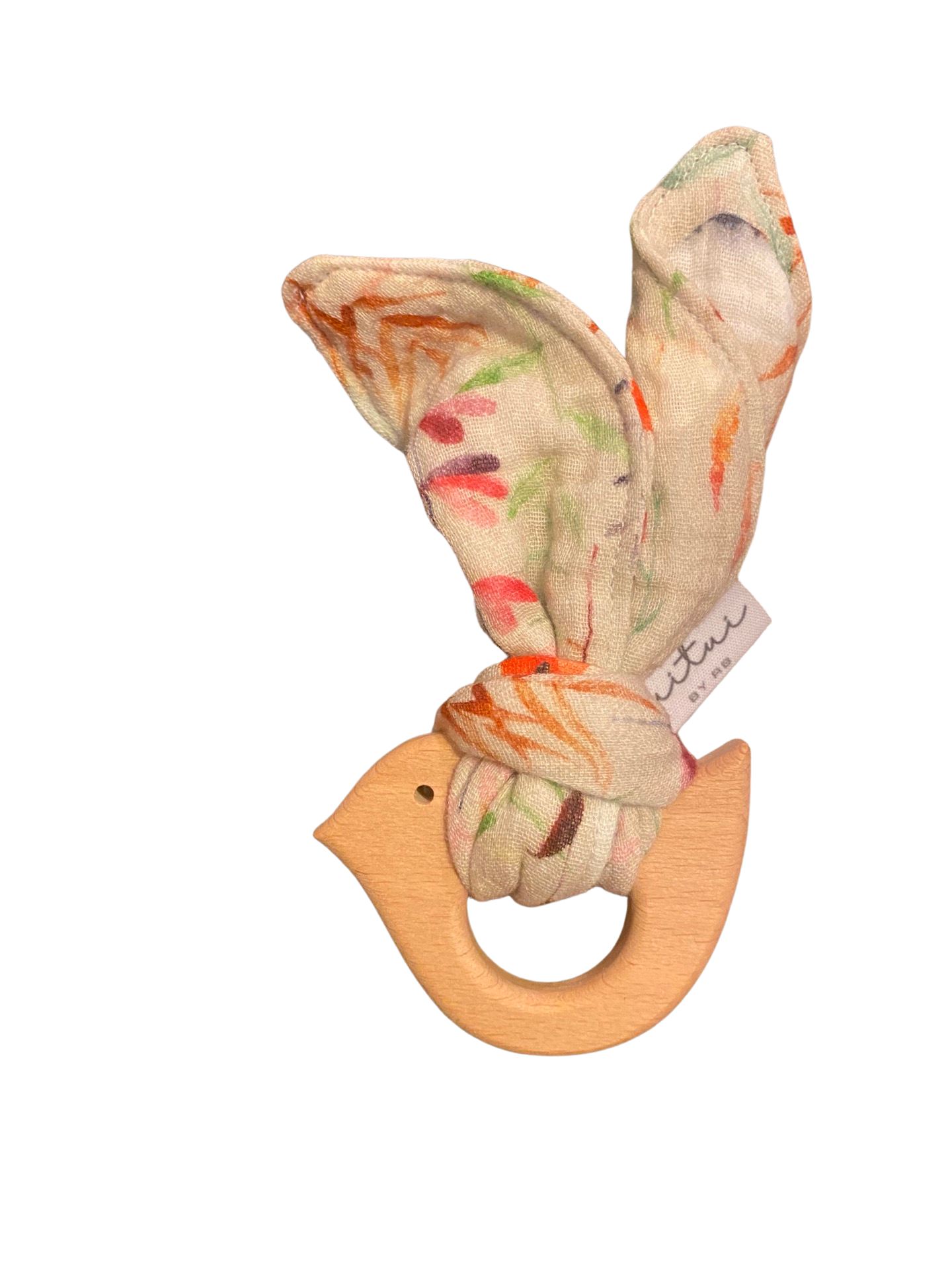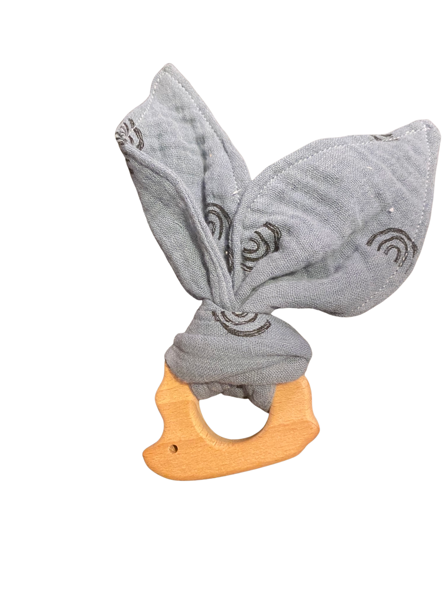 Our mini teethers are made from muslin and smooth untreated birch wooden rings.