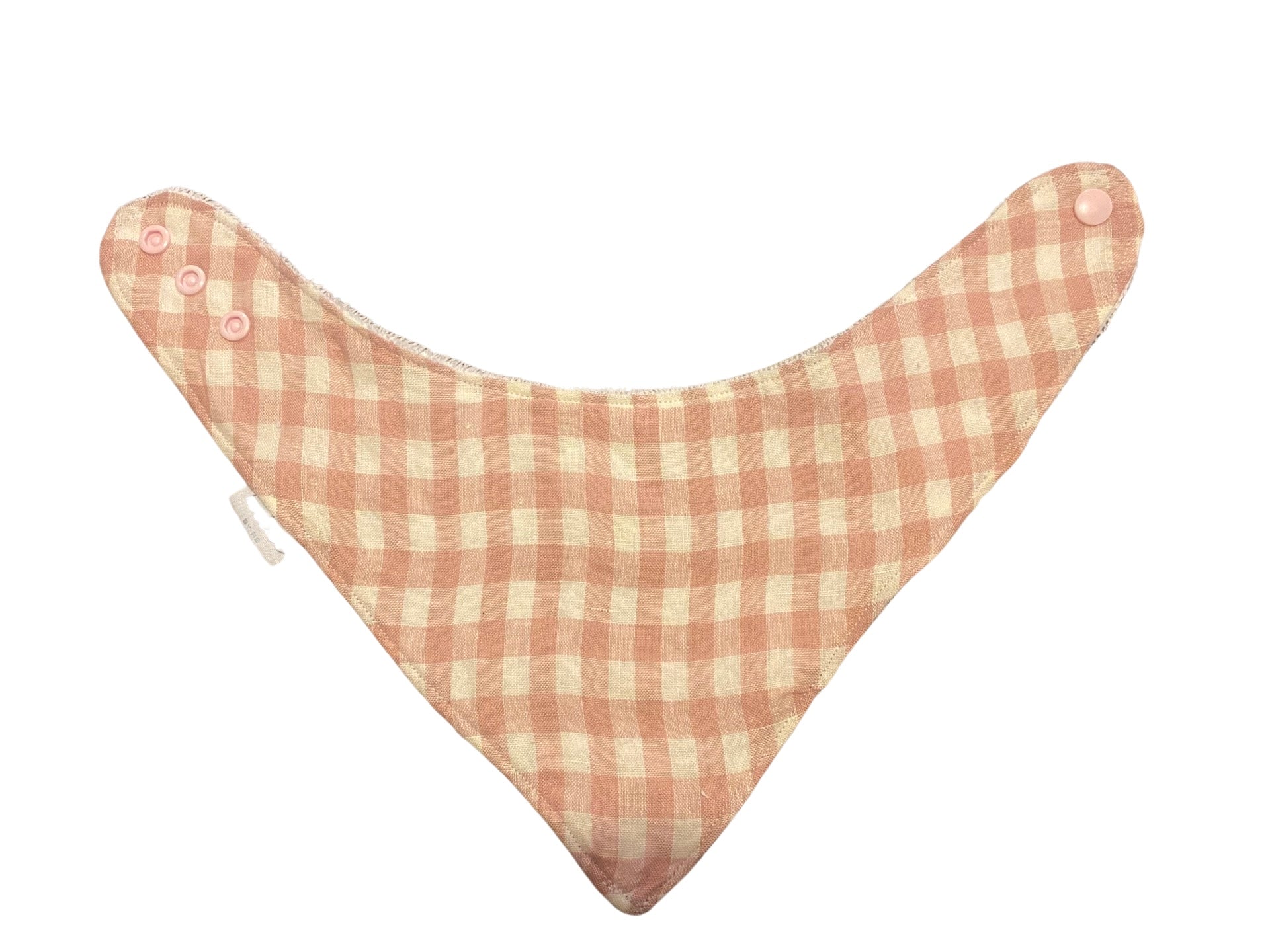Pink linen gingham bandana bib
