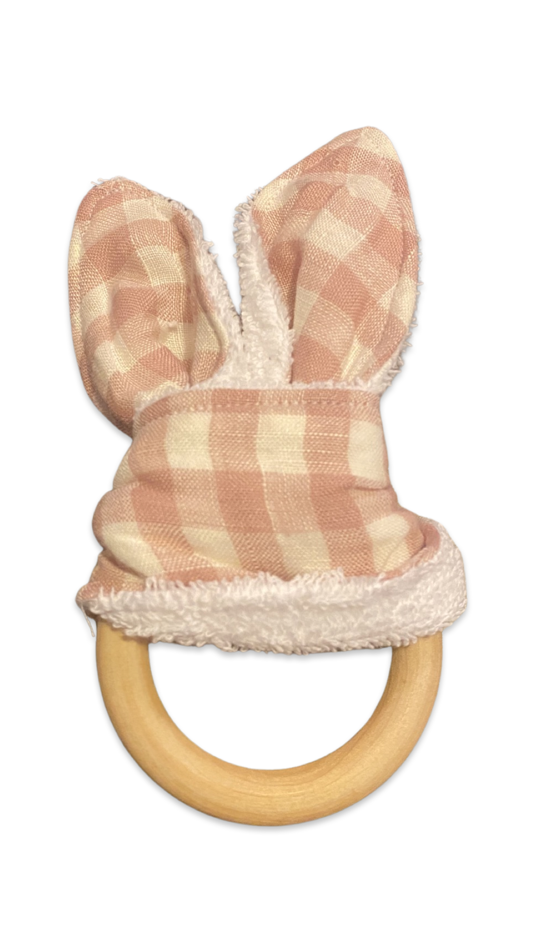 Our ring teethers are made from 100% cotton, absorbent toweling and smooth untreated birch wooden rings.